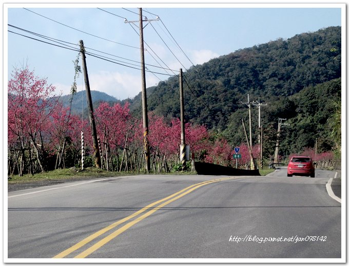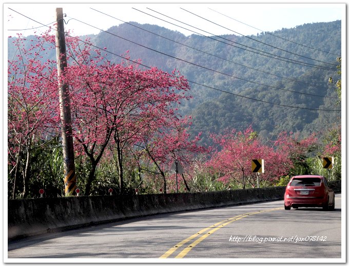 尤其這個路段,也是整片櫻花,不少人停下車拍照,都快塞車了~^^